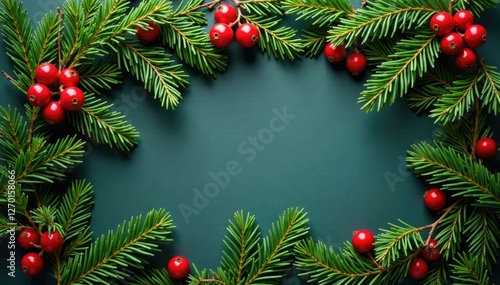 Evergreen branches intertwined with red berries, foliage, decoration