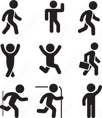 Everyday Movement Icon Set – Solid Walking, Sitting, Standing & Stretching Human Silhouettes
