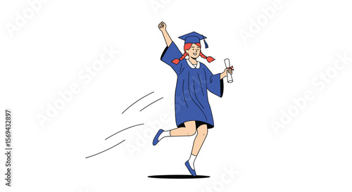 graduation, graduate, student, education, academic, achievement, success, celebration, diploma, degree, tassel, joyful, happy, excited, elated, celebrate, accomplishment, future, career, learning, cognition, school, university, college, commencement, ceremony, scholarship, campus, doctorate, high school, secondary education, higher education, youth, young person, female, illustration, cartoon, graphic, artwork, vector
