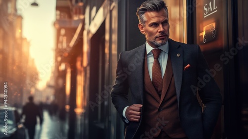 Exclusive business banner featuring an elegant businessman, a call to action, and the caption 'Sale'