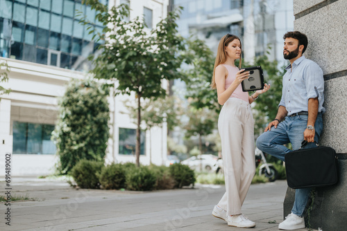 co-worker, efficiency, business, working, downtown, urban, communication, e-business, startup, negotiation, profitability, marketing, executive, meeting, outdoors, networking, corporation, young, successful, opportunity, together, city centre, small business, planning, discussing, sustainability, partner, strategy, autumn