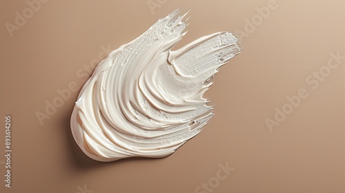 Exfoliating cream smudge on light brown background, skincare ad, top view