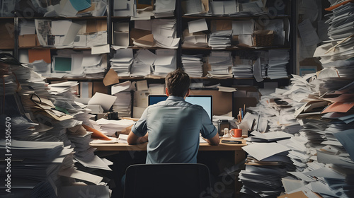 exhausted, stress, work, office, folder, backview, man, overwhelmed, atmosphere, fatigue, burnout, overwork, pressure, deadline, tied-up, sleepy, hard work, stressful, challenging, overloaded, desk, paper, file, coping, struggle, mental health, anxiety, depression, professional, job, career, responsibility, commitment, persistence, determination, resilience, support, colleague, manager, workplace, effort, fatigued, drained, overwhelm, break