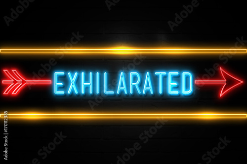 Exhilarated - fluorescent Neon Sign on brickwall Front view