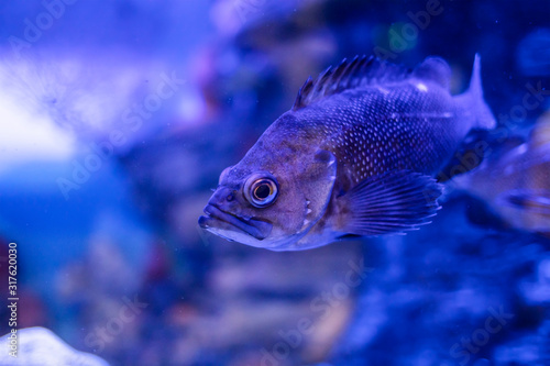 Exotic sea fish swims in the water.