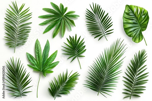 exotic tropical palm fronds collection fresh green leaves isolated on pure white background for creative design botanical illustration and summer decoration