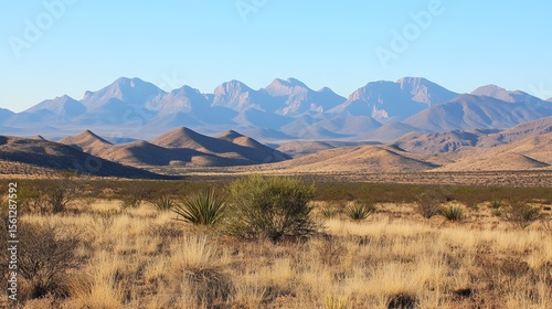 desert, landscape, mountain, hill, sky, clear, sun, arid, dry, vegetation, plant, shrub, grass, brown, tan, gold, horizon, expanse, huge, wide, open, scenic, view, nature, scenery, panorama, wilderness, remote, tranquil, peaceful, calm, serene, beauty, majestic, impressive, stunning, breathtaking, amazing, remarkable, extraordinary, marvellously