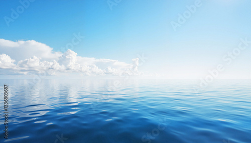 Expansive ocean horizon reflecting blue sky, serene tranquility