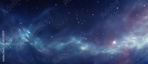 Expansive view of a space teeming with stars set against a serene blue sky background