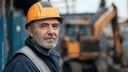 Experienced Male Construction Worker in Safety Gear Smiling at Job Site