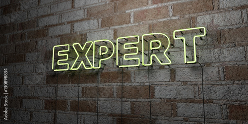 EXPERT - Glowing Neon Sign on stonework wall - 3D rendered royalty free stock illustration. Can be used for online banner ads and direct mailers..