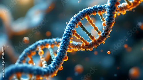 explore the Intricate Structure of DNA Molecules in High-Resolution 3D Rendering – A Visual Insight into Genetics, Biology, and Molecular Science