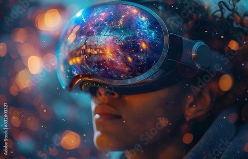 dimension, leap, explore, life events, technology, innovation, alternate, universe, simulation, possibility, adventure, discovery, perspective, digital, journey, interface, headset, parallel, existence, boundary, perception, reality, expansion, imagination, futuristic, space, fantasy, light, concept, magic, dream, star, fractal, brain, nebula, human, vision, mystical, consciousness, face, human being