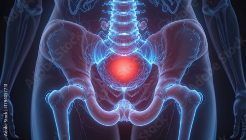 Explore the Pelvic Anatomy with this Stunning Visualization of the Hip Bone Structure and Lumbar Spine for Medical Education and Healthcare Professionals