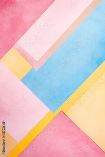 Explore the trendy pastel background featuring abstract geometric shapes in soothing tones of pink, yellow, and blue with integrated sale tags showcasing a clean layout and ample copy space