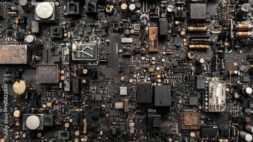 circuit board, electronic, technology, component, solder, design, innovation, circuit, machinery, engineering, closeup, detailed, interconnected, microchip, signal, assembly, hardware, device, layout, manufacturing, wiring, infrastructure, printed circuit, pcb, modern, capacitor, resistor, dense, intricate, schematic, network, digital, production, black, metallic, integrated circuit, sophisticated, system, precision, complex, connectivity, circuitry, high technology