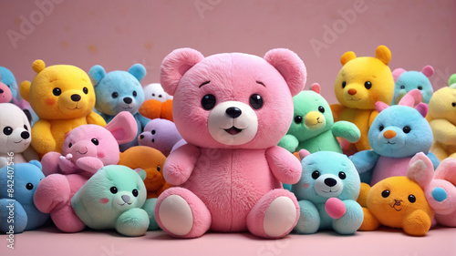 Exploring the enchanting world of cheerful plush toys, where softness meets joy in a symphony of colors and cuddles, Generative AI
