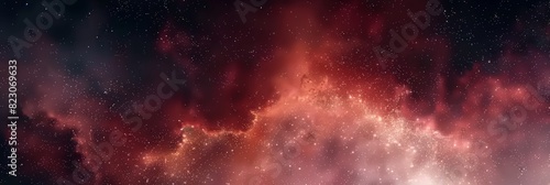 explosion in space, dark red and white particles swirling in the air, abstract red and white cloud, surrounded by particles of fire in the night sky. red space, nebula