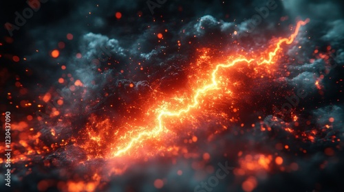 explosive, energy, lightning, fiery, cloud, dramatic, electricity, power, thunderstorm, storm, dark, bright, vibrant, nature, sky, orange, red, black, dynamic, intense, bolt, electric, fire, heat, weather, atmospheric, crackling, danger, glow, powerful, light, motion, tempest, surreal, burning, contrast, force, shock, phenomena, igniting, natural, striking, high-coloured, current