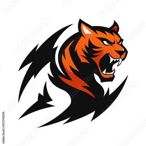 Explosive Tiger Logo with Claw Swipes, Strong Shadows, and Aggressive Forward Stance
