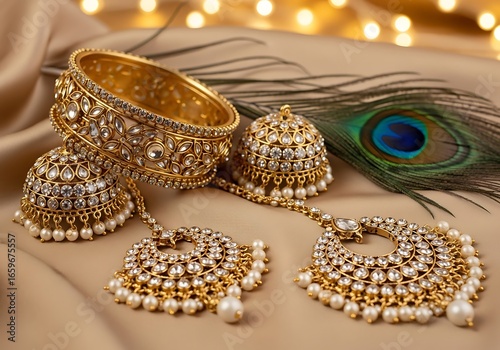 jewellery, gold, diamond, bangle, earring, peacock, feather, luxury, precious, elegant, traditional, cultural, ethnic, ornate, sparkling, shiny, accessory, adornment, beauty, fashion, style, decoration, opulent, rich, glamour, celebration, festive, heritage, artisanal, handcraft, indian, oriental, antique, vintage, gem, expensive, wealth, prosperity, fine, detailed, intricate, symbolic, exotic