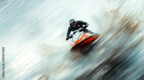 Extreme Jet Ski - Bold action shot of a jet skier performing an extreme maneuver or stunt, with waves and motion blur.