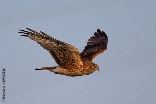 Extremely close view of a hen harrier in beautiful light , seen in the wild near the San Francisco Bay