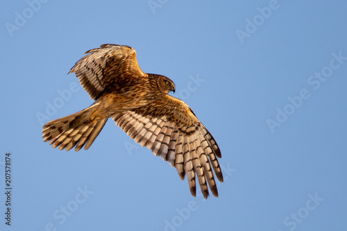 Extremely close view of a hen harrier in beautiful light , seen in the wild near the San Francisco Bay