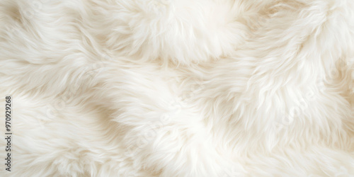 Ф close-up of natural sheepskin wool texture. The long, fluffy fibers create a soft and luxurious appearance with gentle waves and curls across the frame. Generative AI