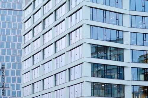Facade fragment of a modern office building. Exterior of glass wall with abstract texture.