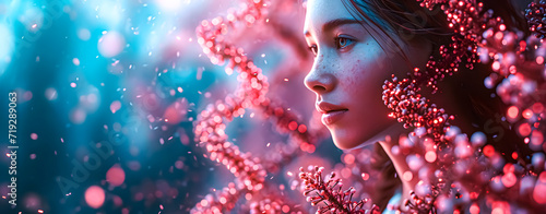 Face of a woman and DNA representing gene therapy