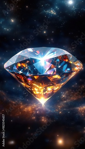 diamond, gem, gem, crystal, gemstone, space, cosmos, star, galaxy, nebula, sparkle, glow, aglow, radiant, refraction, prism, facet, brilliance, shimmering, transparency, blue light, floating, cosmic, stellar, aethereal, mystical, majestic, awe, wonder, surreal, sparkling, luxury, precious, bright, colourful