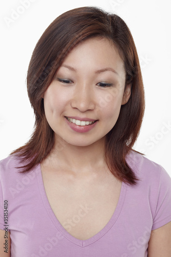 looking, smiling, looking down, front view, asian, expression, face, facial, individual, individuality, isolated, simple, simplicity, malaysia, malaysian, feminine, femininity, chinese, portrait, look, toothy smile, smile, happy, cheerful, down, look down, asian ethnicity, one person, adults only, studio shot, lifestyle
