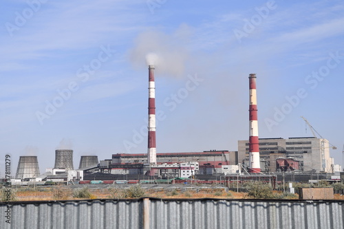 factory, industry, power, plant, chimney, industrial, pollution, energy, sky, refinery, smoke, pipe, oil, gas, environment, station, chemical, electricity, building, tower, technology, fuel, blue, pow
