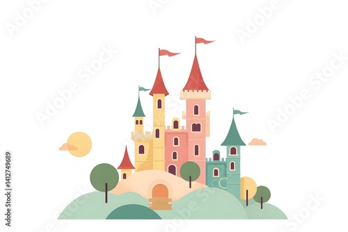 Fairytale City Illustration with Towers and Pastel Colors