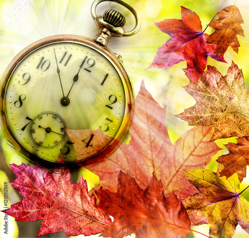 fall leaves and clock