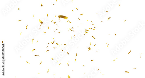 Falling isolated Gold Confetti. Glitter celebration PNG, Falling shiny gold confetti overlay on transparent background. 3d Rendering Transparent Confeti. Glossy golden festive tinsel. party, holiday,