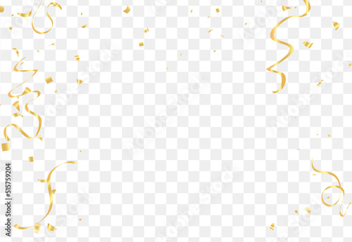 Falling shiny golden confetti isolated on transparent background.VIP flying sparkle elements, gold foil texture serpentine streamers confetti falling new year vector.