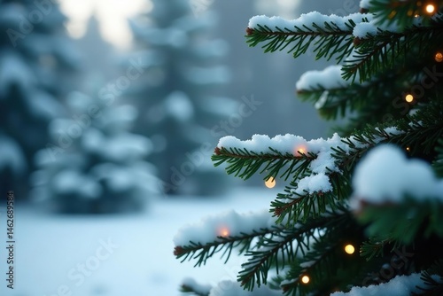 Falling snow over a pine tree with delicate snowflakes, creating a festive winter Christmas scene , winter, background