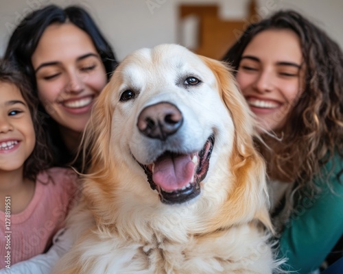 Family Connection Aesthetic Warm Tones and Cozy Textures with Dog in Casual Home Setting - Modern Lifestyle and Bonding Content for Multigenerational Appeal