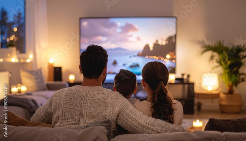 family, watching, television, television, home, living room, cosy, evening, relaxing, together, children, children, entertainment, screen, indoor, comfort, warmth, light, candle, lamp, sofa, couch, leisure, bonding, domestic, lifestyle, modern, technology, digital, content, program, motion picture, show, house, interior, decor, ambience, peaceful, quiet, unwinding, relaxation, happiness, joy, connection, intimacy, serene, calm, night