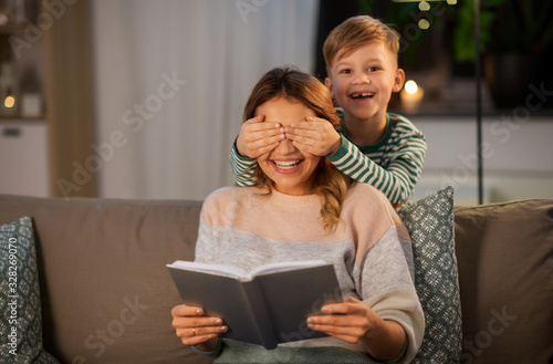mother, son, family, play, game, home, happy, smiling, guessing, closed, eye, book, reading, hand, children, eltern, woman, boy, people, night, sofa, couch, person, concept, indoor, children, young, leisure, lifestyle, male, little, single, motherhood, parenthood, infant, small, preschool, together, adult, hispanic, latin, parenting, lovely, sweet, cute, laughing, living room