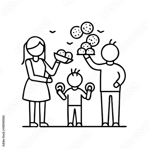 family sharing sweets icon, family sharing sweets line art - simple line art of family sharing sweets, perfect for family sharing sweets logos and icons