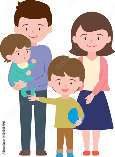 illustration, vector, material, graphic, card, leaflet, pamphlet, poster, advertisement, greeting, cute, fun, smile, enjoy, family, mother, father, mother, father, woman, man, boy, baby, children, children, ball, blue, yellow, cartoon, children, people, children, love, smiling, group, smile, son, character, brother