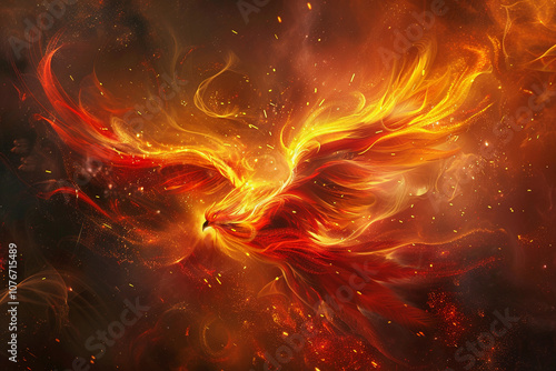 phoenix, bird, fiery, glowing, rebirth, wing, fire, flames, burn, fly, hot, heat, animal, feather, burning, eagle, hawk, hawk, predator, legend, tail, flying, rising, freedom, volcanic, volcano, red, orange, gold, bright, high-coloured, colourful, vibrant, light, fantasy, myth, mythology, mythical, mystical, spiritual, magic, majestic, magical, aethereal, radiance, engulfed, hologram, ash