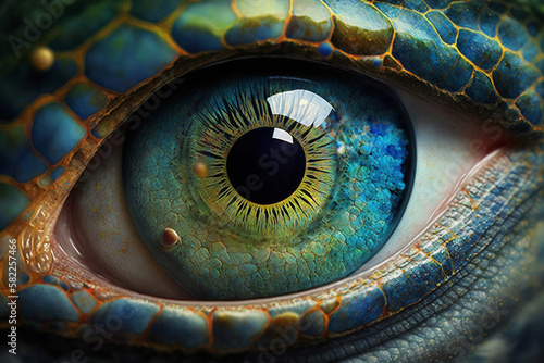 Fantasy Eye with Vibrant Amazing Colors Macro Close up view. Eye Macro with Vibrant Saturated Colors. Ai generated