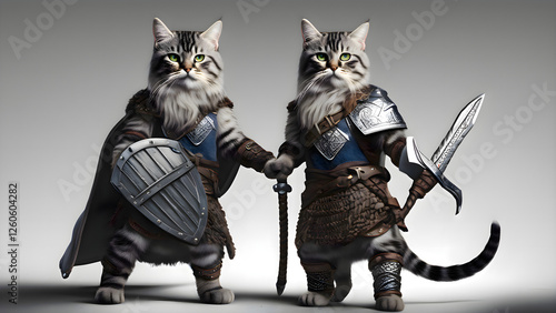 Fantasy feline knights with swords and shields