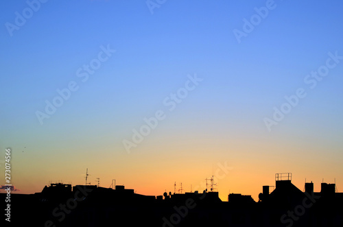 Farbverlauf im Himmel über Dächern