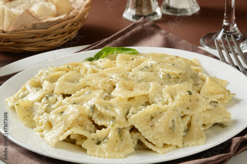 Farfalle pasta with pesto sauce