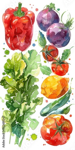 vegetable, watercolor, food, vegan, vegetarian, organic, bio, fresh, market, shop, diet, menu, ingredient, green, tomatoes, healthy, grocery, isolated, white, background, nourishment, variation, garden, eating, detox, concept, basket, supermarket, shopping, harvest, balanced, meal, agriculture, abundance, set, lifestyle, cooking, plant, mixed, variety, dieting, fruit, vitamin, health, avocado, salad, product